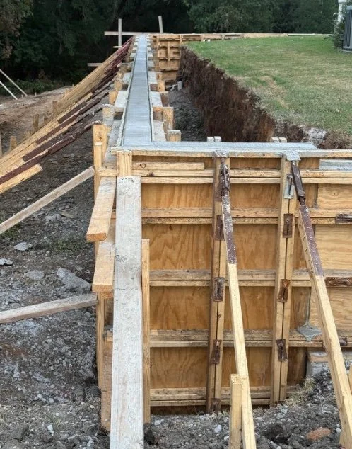 Wood Wall Project - Landscape construction, building a retaining wall with concrete.